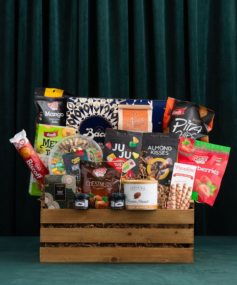 Indulge in the finest selection of premium kosher treats carefully chosen to ensure the highest quality. Inside, you'll find an assortment of artisan snacks, including rich chocolates, premium nuts, and dried fruits, all paired with a petite succulent plant. Every item in this basket meets kosher standards, making it a thoughtful gift for friends, family, or colleagues
