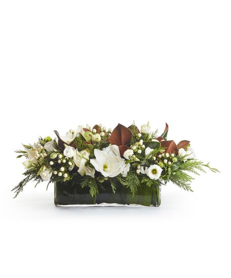 "December's wintery breath is already clouding the pond, frosting the pane, obscuring summer's memory." - John Geddes Use "Miss December's" White Amaryllis, Lisianthus, Hypericum, and Juniper to give you those fresh, crisp winter feels.